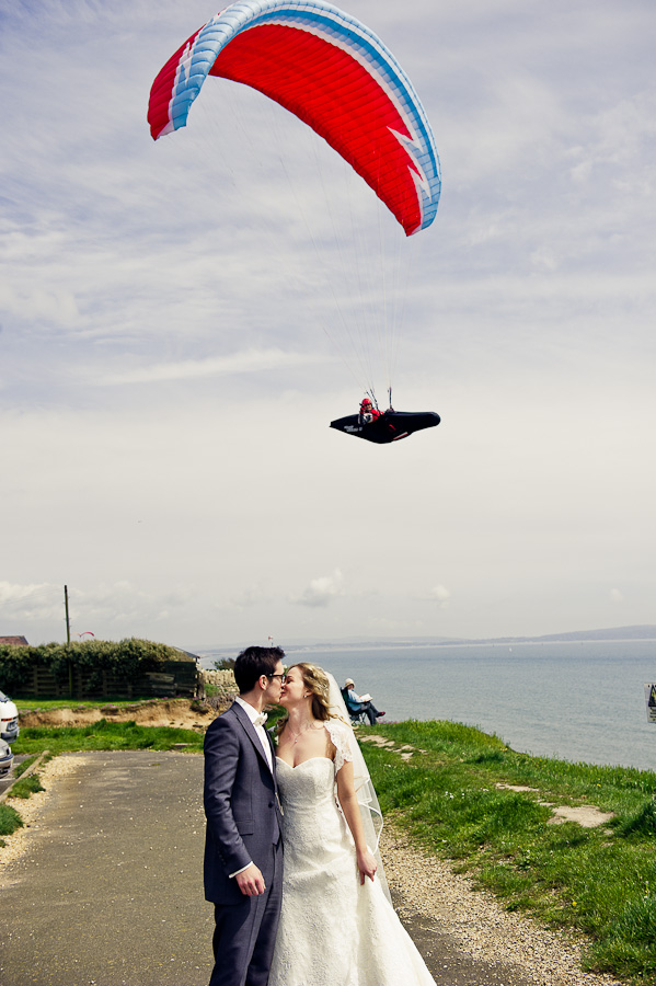 Wedding photography in Hampshire – my latest wedding takes me back home in UK – after multiple destination weddings in France, Italy and Mexico I’m pleased to present the wedding of Ellie and Chris. We started out St Mary’s Church in Broughton, did a little shoot on the southern coast with some paragliders in the back, and had the party at the fabulous Chewton Glen Hotel in New Milton. Awesome set of speeches there, although I have no video footage of them I still have some great photos, so you can join the laughter down under. Enjoy!